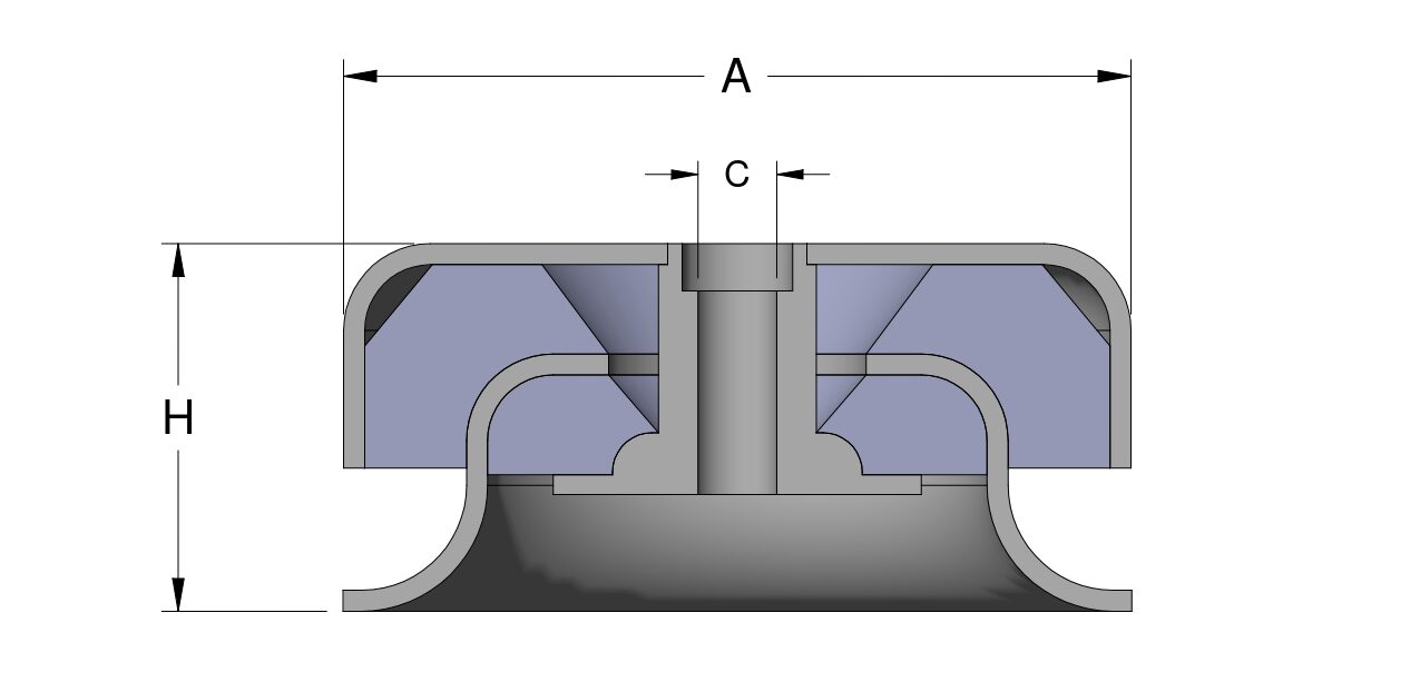 Captive Shock Mounts are low profile and relatively stiff failsafe mounting which makes them suitable for high frequency applications. They have a close ratio between compression and shear making them ideal for mobile applications. They are available in various compounds from Natural Rubber to Silicone (high temperature resistance).