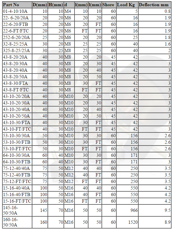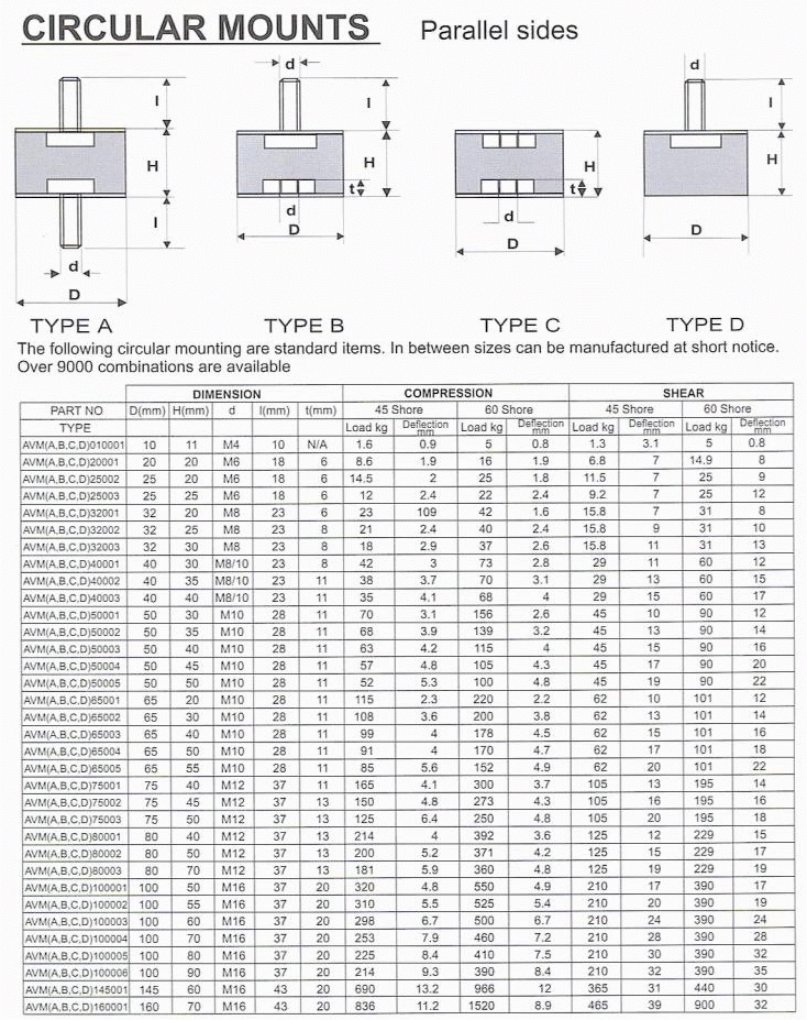 In our experience, the following circular mounting are the most commonly used. The parts listed below are usually ex stock. Please note FT is short for female thread
