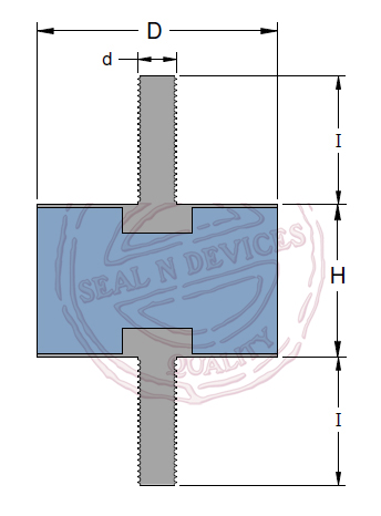 Part No D (mm) H (mm) d I (mm) I (mm) Rubber Hardness (Shore) Compression Load (kg) Deflection (mm)