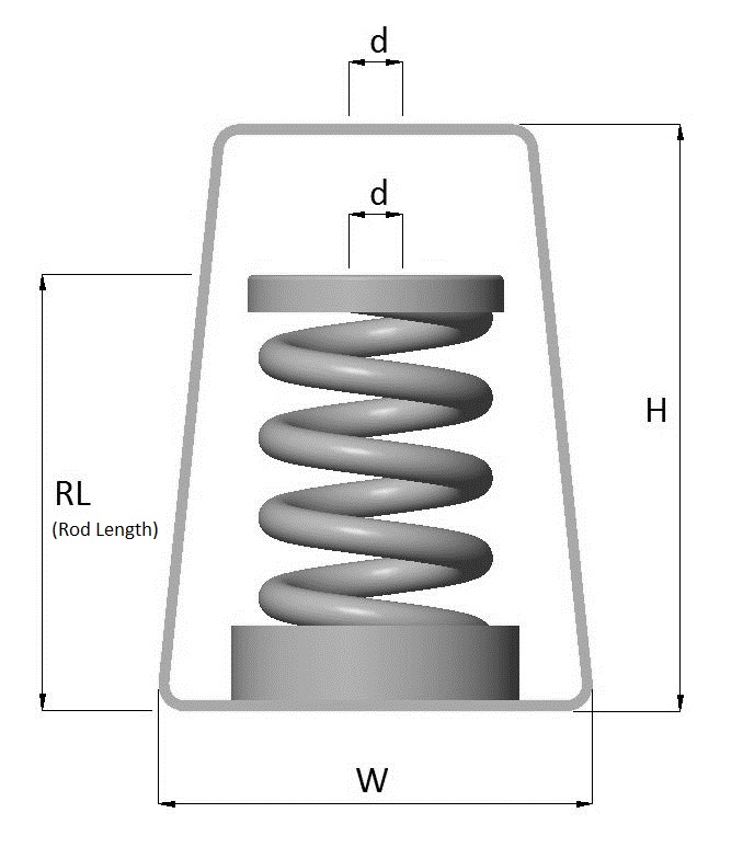 Size Rated Load (kg) Rated Defl. (mm) Spring Rate (kg/mm) Spring Colour H D RL d W